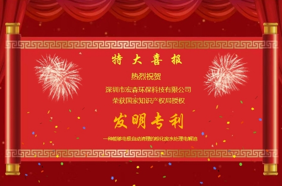回首過去的一年,宏森環保敢于迎接市場變化,在工業廢水處理領域取得了斐然成績!在2023年即將過去,2024年即將到來的美好時刻,宏森環保又獲得了一份令人振奮的喜訊:榮幸獲得了國家知識產權局授權的發明專利一種能夠電極自動清理的棕化廢水處理電解池